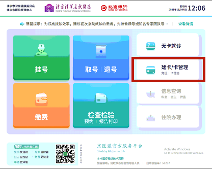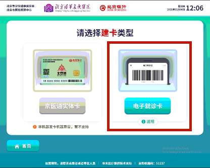 自助机:在京医通自助机持身份证点击建卡→京医通电子卡→完善个人信息后即可获得本人电子就诊码。