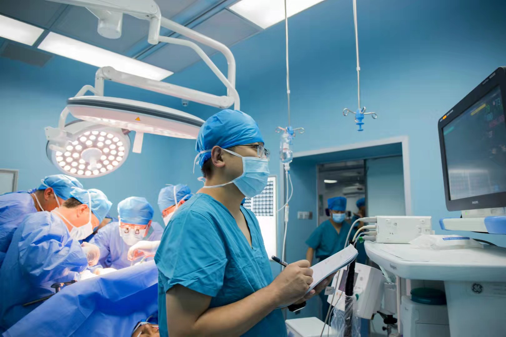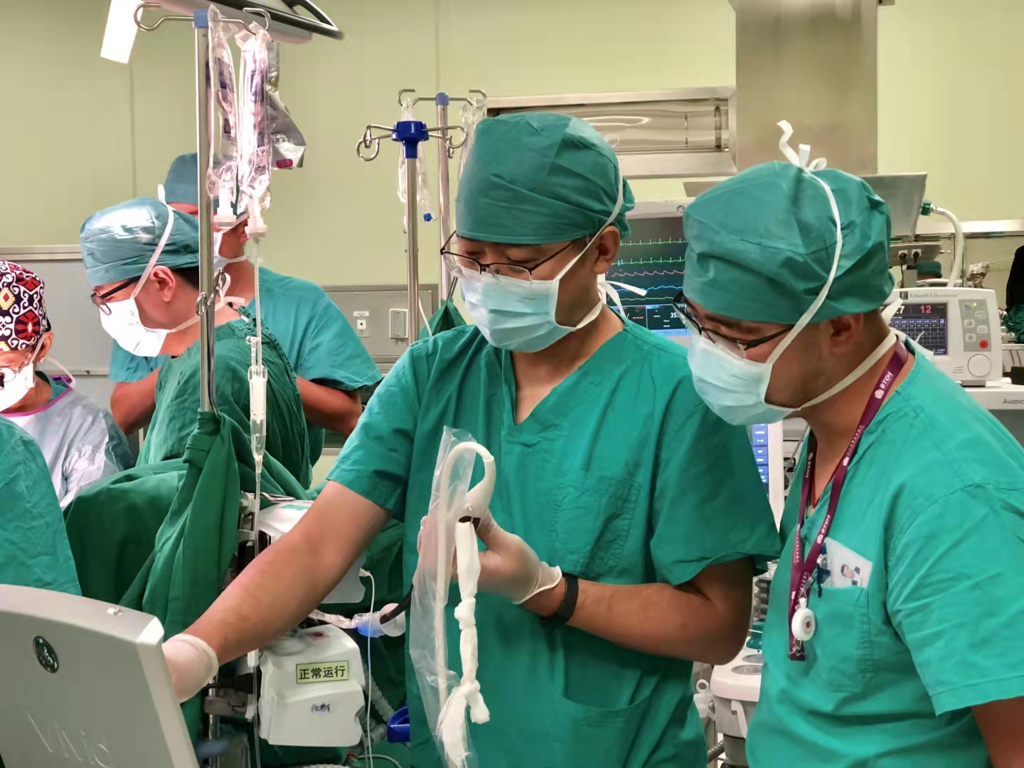 高志峰(右二)在麻醉监测中