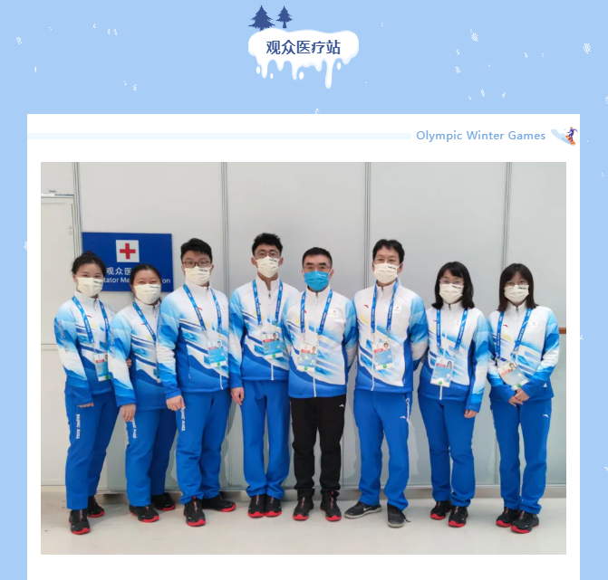 观众医疗站是唯一一个闭环外医疗站,负责环外的观众、志愿者与场馆工作人员等约800多人的医疗保障工作,“赛前我们进行了反复演练,加上去年的两次保障经历,对流程已经很熟悉了。”观众医疗站主管、肝胆外科医师闫军说。“在防疫上也做了全面的应急预案,与环内的防疫联动,出现问题立刻监测、转运,保障环外工作的安全和顺利。”虽然春节期间队员们要自己披星戴月,往返于场馆,“但一辈子能参与一次冬奥会保障,承担着国家交付我们的使命,我们很荣幸!”