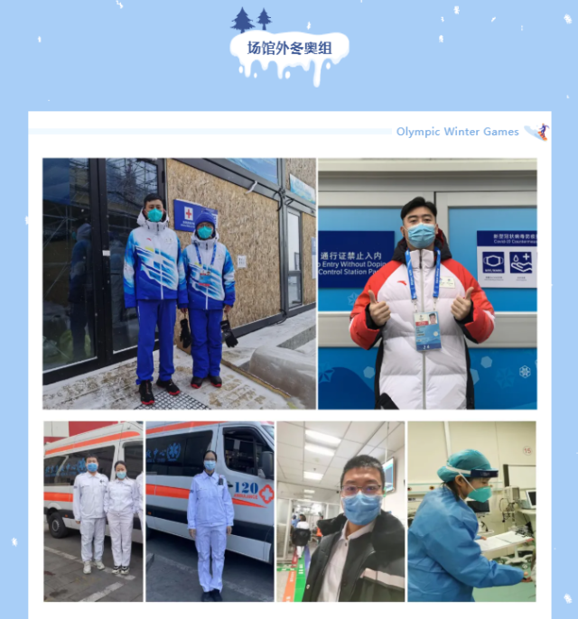 除了“冰立方”场馆医疗保障团队,医院还派出人力前往北京和张家口赛区参与急救与冬奥外语志愿服务、兴奋剂检测等工作。大家坚守在冬奥会各个站点,以严谨的态度、务实的行动为冬奥会的顺利进行贡献力量。尽管不能团聚,“但家人非常支持,对我们也是一份荣誉。冬奥保障责任重大,一生能有这样一次机会以这样的形式为国家增光添彩,我们很自豪!”