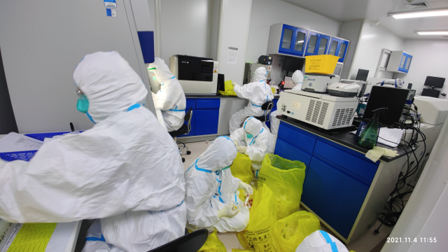 踔厉奋发,砥砺前行。自2020年爆发的新冠肺炎疫情犹如大考,党有号召,团有行动。检验科投身防控工作,坚守一线岗位,于2020年2月24日取得新冠病毒核酸检测资质后迅速投入战斗。疫情形势最为严峻的2020年上半年,科室检测新冠病毒核酸28,790件,共计59,132人次。同时积极支援高校和社区筛查工作。新冠病毒核酸报告用时中位数由5月底的890分钟,缩短到6月底的284分钟。检验科始终秉持“若有战,召必至,战必胜”的信念,2020年4月,科室成员前往小汤山医院支援核酸检测,样本接收、灭活、核收登记、试剂配制、核酸提取、上机扩增、结果分析,24小时不间断地进行检测,每每脱下防护服,内穿衣已全部湿透。2022年1月至今科室派出成员承担冬奥会外籍人员新冠核酸检测任务,为保障冬奥运动会顺利进行保驾护航。检验科这支年轻集体,在一次次考验中栉风沐雨、披荆斩棘,迸发出青年的奋进力量!