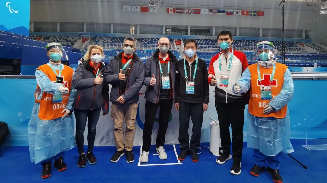 医疗保障队与国际残奥委员会医学委员会主席和医学科学部部长James Kissick(左四)团队合影