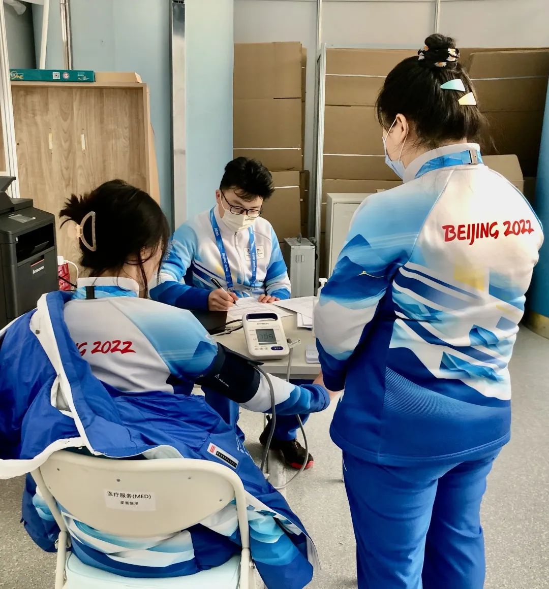 观众医疗站不仅负责观赛群众的医疗服务,还担任着冰立方闭环外所有工作人员的健康保障工作。平时,观众医疗站会接诊一些感冒、头晕、腹痛等患者,但随着工作的持续,我观察到许多患者平时对自己的身体情况不够了解,对常见病的知识掌握还不够多,非常容易造成健康隐患。作为一名医生,我敏锐地意识到,我们的工作不仅是为大家诊治疾病,更要多进行健康科普知识讲解,帮助大家培养、建立起健康意识尤其重要。最明显的例子,就是每天都有许多工作人员到观众医疗站测血压,从而便捷地筛查是否患有高血压,而他们中的大部分人,平时很少会特意留心血压情况。