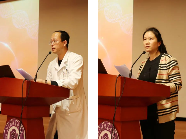 工会民主委员李润青(图左一)进行提案工作汇报,汇报中对2021年度全院收集的提案及办结情况、2022年度提案收集及立案情况分别进行了总结。工会经费审查委员会主任林琼菁(图右一)进行经费审查报告,报告中详细陈述了2021年度工会经费的收支情况及审查意见,并对未来加强经审工作提出了建议。