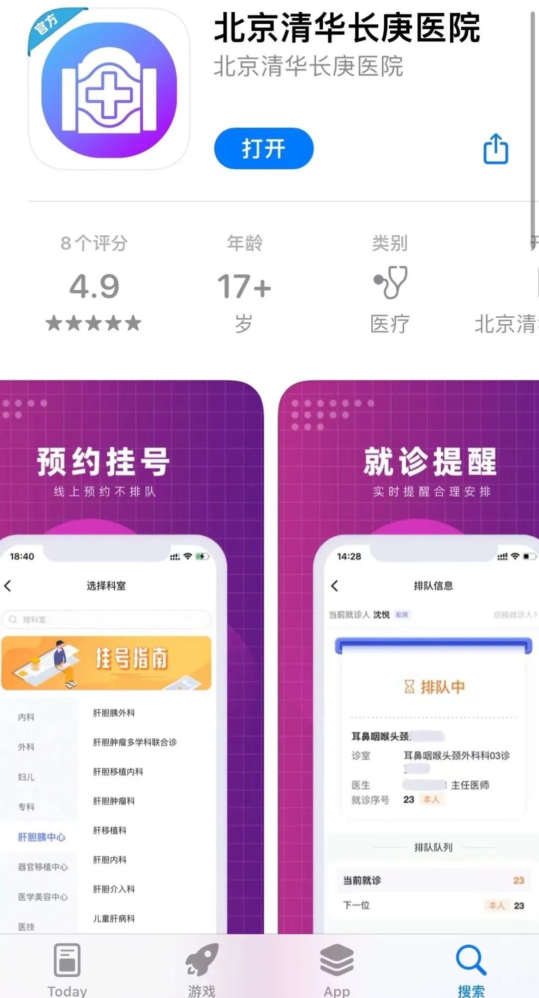 1、苹果手机在 App Store,安卓手机在小米、华为、OPPO、vivo、腾讯应用宝等软件商店中搜索“北京清华长庚医院”安装。