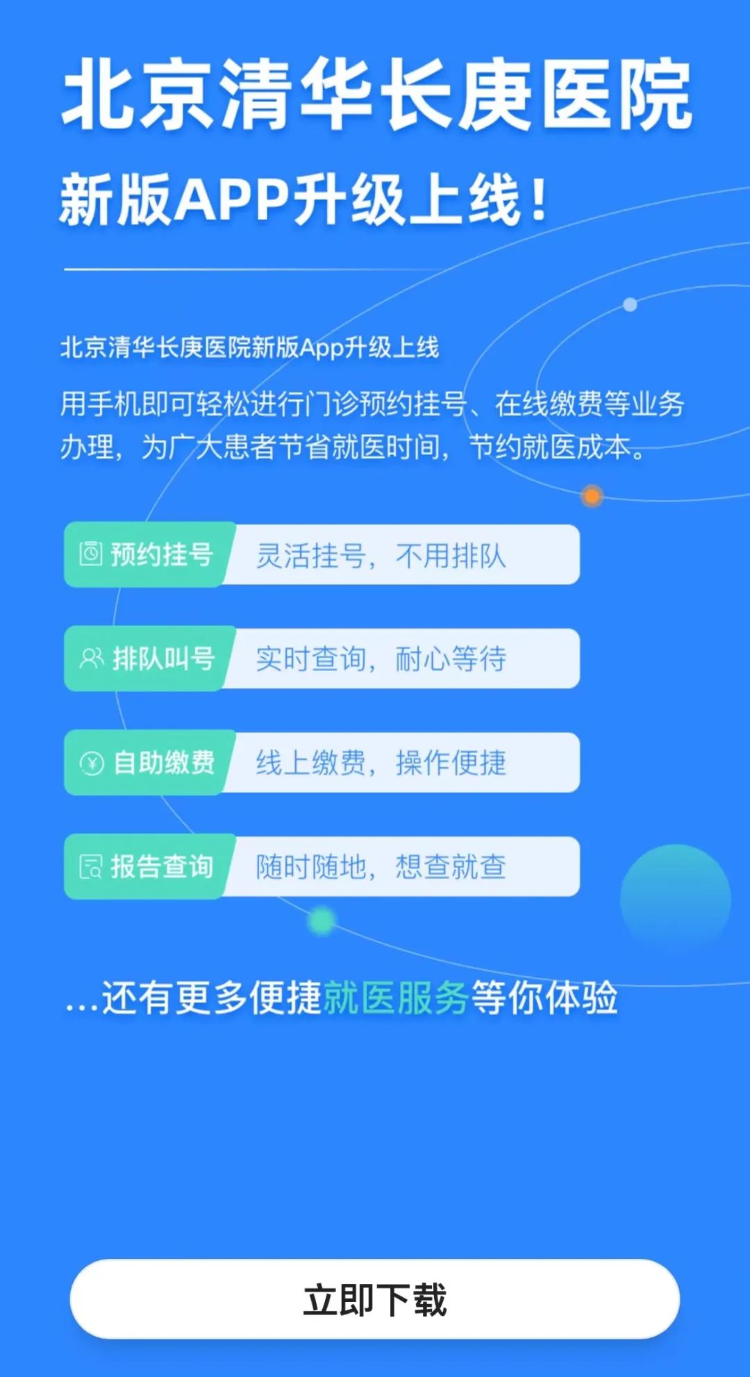 北京清华长庚医院4月6日电(通讯员 楼丽娜 张央)响应国家智慧医疗服务建设号召,拓展更多线上患者服务功能,北京清华长庚医院手机端服务平台全新升级,推出新版APP应用,目前已在各大手机应用商店中上架。