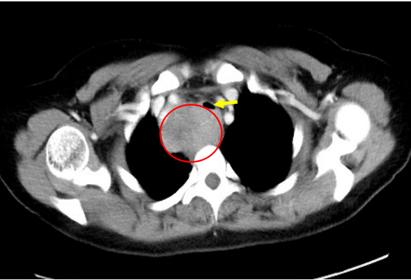 “必须尽快进行手术!”患者肿瘤由颈根部向下,紧贴气管延伸至心脏上方,向内压迫导致气管导致严重狭窄,患者出现了明显憋喘症状。胸外科副主任、主任医师陈东红介绍到,“这种情况对麻醉是个挑战,气管插管困难可导致患者窒息甚至死亡。并且,术中如果发现肿瘤侵犯气管,需要进行气管切除重建。如果肿瘤侵犯右侧头臂干动脉,还需要进行大血管切除重建。”