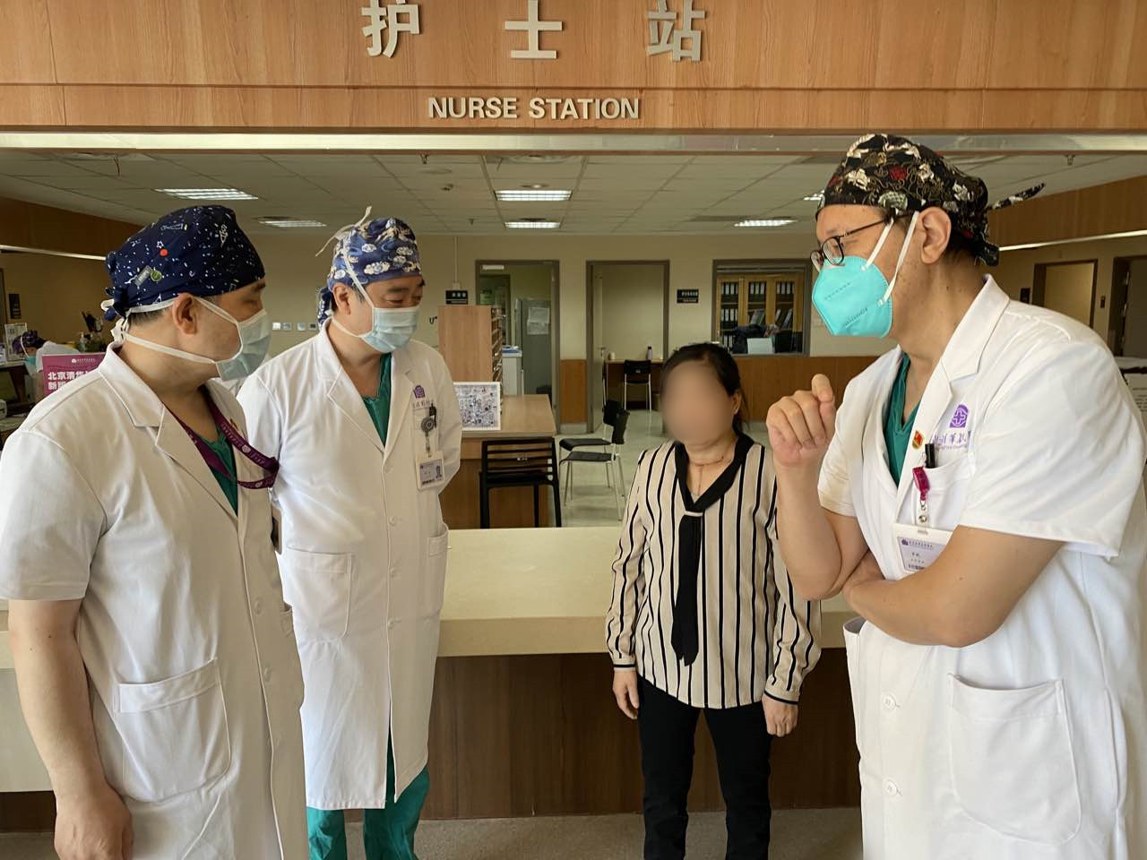 术后,患者由于肿瘤摘除出现了甲状旁腺素快速回落,血钙下降,需要大量补钙。同时,由于术前血钙控制治疗产生的电解质水平波动、液体负荷加重等,患者出现了一定程度的右心脏功能不全。在重症医学科及胸腔外科的精心治疗照护下,患者的各项指标逐渐趋于稳定,不再憋喘,术后10天能自如活动,顺利康复出院。
