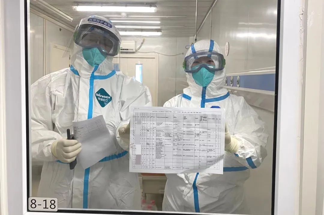 赵凯越负责应急7、8区近60余位患者的临床工作,层层防护下,她不仅需要查房、做检查,更重要的是密切关注患者心理状况。一位复阳的老奶奶总在病房默默哭泣,查完房赵凯越会再去和奶奶“话疗”会儿,缓解她的焦虑。即便在隔离病房外的值班室,不论何时只要接到患者的求助电话,医生们都会再次穿上防护服踏入隔离区。
