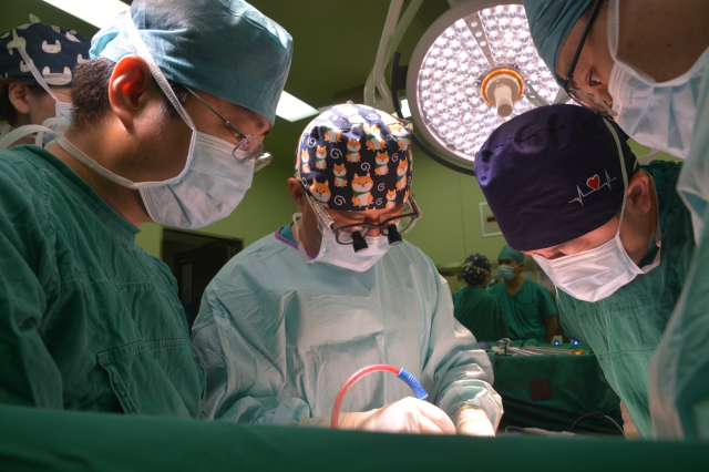 李元新与朱志冬首先顺利自供体取出胃、胰腺、十二指肠、小肠并进行修整,与此同时胃肠外科王峰副主任医师正在为小凌切除已经失去功能的大部分结肠和全部小肠、切除远端大部分胃、切除大部分十二指肠,其中,由于肠系膜根部解剖结构十分复杂,稍有不慎就是致命的大出血,李元新主刀在密布的大血管中谨慎切除了十二指肠关键部位。