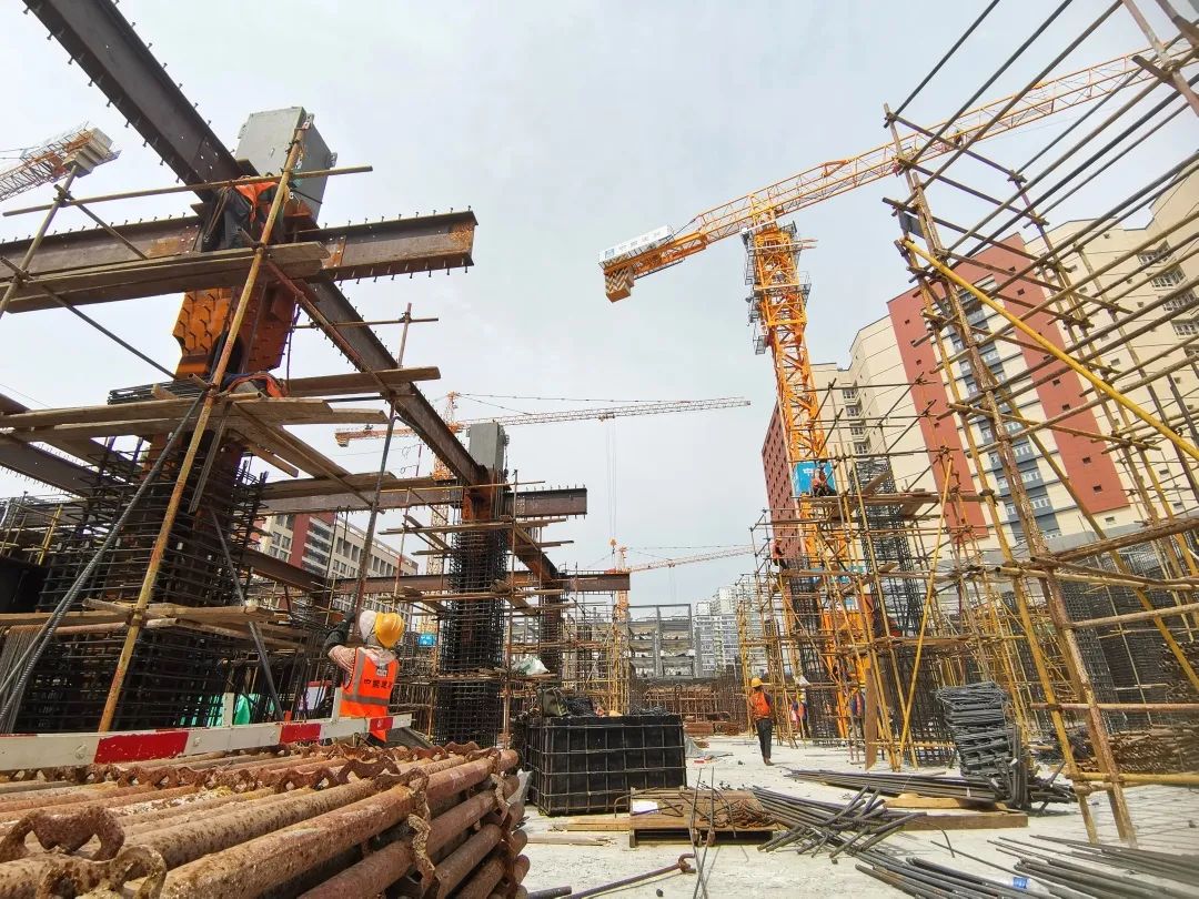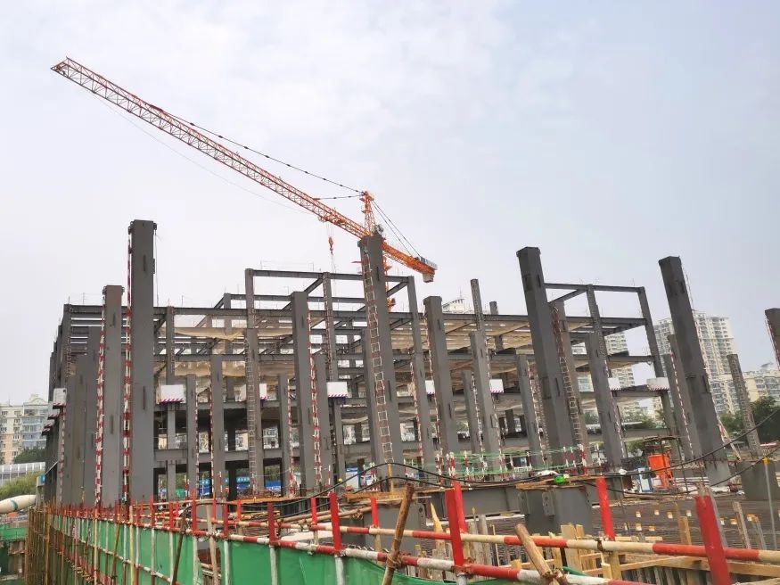 整个工程项目建设进度最快的是裙楼区域,现已进入主体钢结构封顶阶段。目前,工程项目形象已完成整体工程的35%左右,主体结构工程预计11月完工。