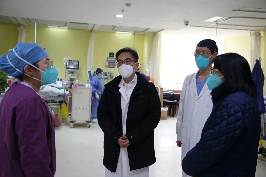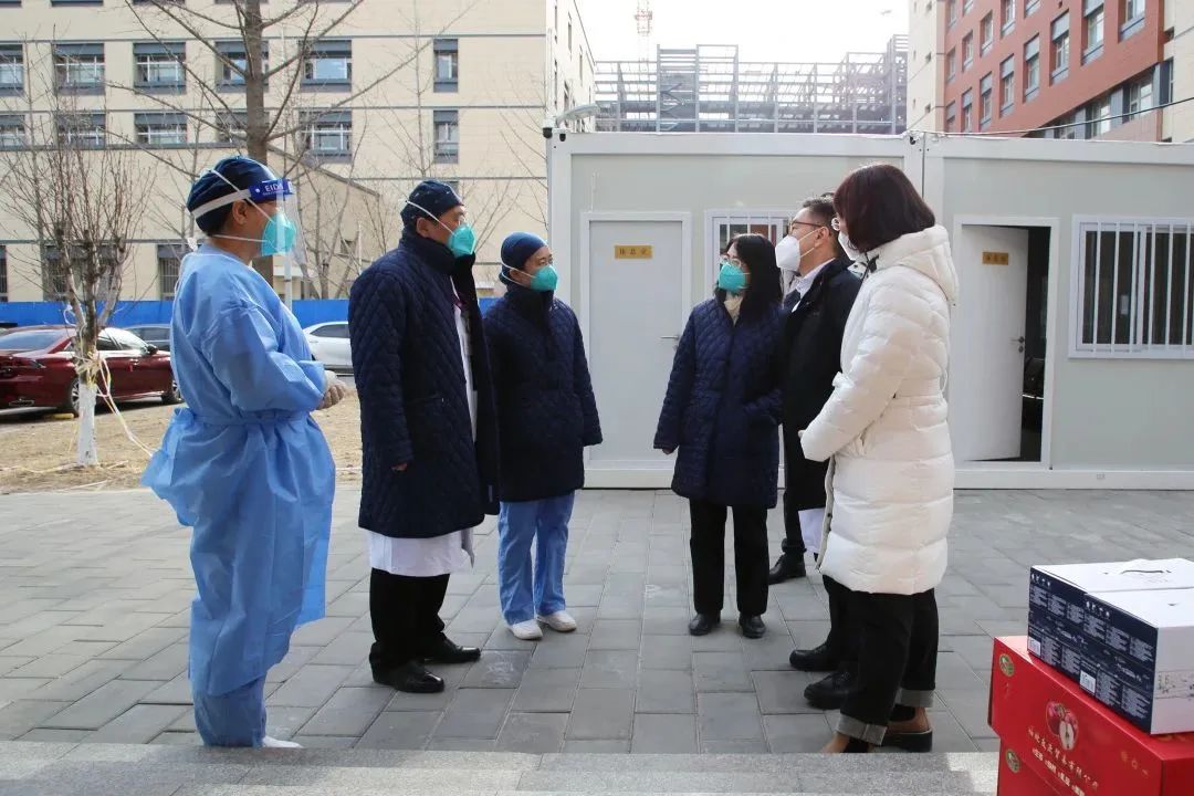 随后,黄天荫、周月红一行人来到医院发热门诊及急诊,慰问“战斗”在一线的医院员工。面对仍然严峻的新冠疫情形势,医务人员严重不足,大家克服各种困难坚守岗位,充分体现了医务工作者生命至上、患者至上、无私奉献的精神。在与大家的交流中,黄天荫、周月红关切医务人员的身心状况、工作情况以及日常生活等,并叮嘱鼓励大家做好个人健康管理,携手努力,坚定信心,为战胜疫情做出清华医学人应有的贡献。(摄影 张燕)