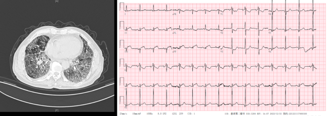 其中一名患者为老年男性,既往有间质性肺病等肺部基础病,此次因为发热伴有呼吸困难来院就诊,诊断为新冠病毒感染导致肺炎并伴有呼吸衰竭。然而,老先生同时突发剧烈胸痛,心电图诊断为急性下壁心肌梗死。新冠肺炎合并急性心肌梗死,患者病情危重,急诊立即为患者行无创呼吸机治疗,同时洽心血管中心启动心梗抢救绿色通道,心脏内科副主任医师周博达火速赶往急诊接诊,导管室团队同步启动接台准备。