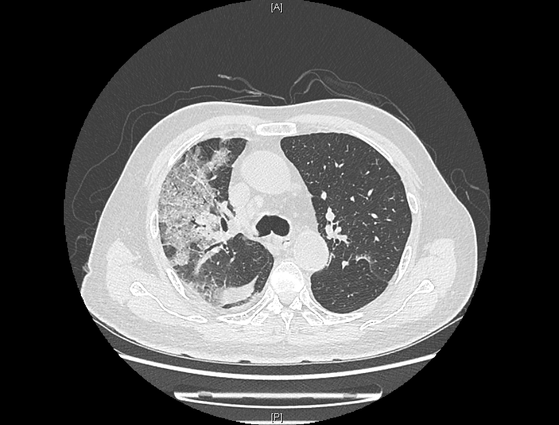 来院时,患者感染新冠病毒5天,持续发烧不退,出现了憋气、意识不清。入院后持续监察发现,患者肺部CT逐步呈“白肺”状态,血气氧分压一度降至50mmHg,“正常血气氧分压为80-100mmHg,低于60mmHg,在临床上就可诊断为I型呼吸衰竭。”感染性疾病科主任林明贵说。同时,患者合并长年慢阻肺、高血压病史,以及少见的血液病单克隆丙种球蛋白病、心梗病史、甲状腺功能减退、肾动脉狭窄等疾病。