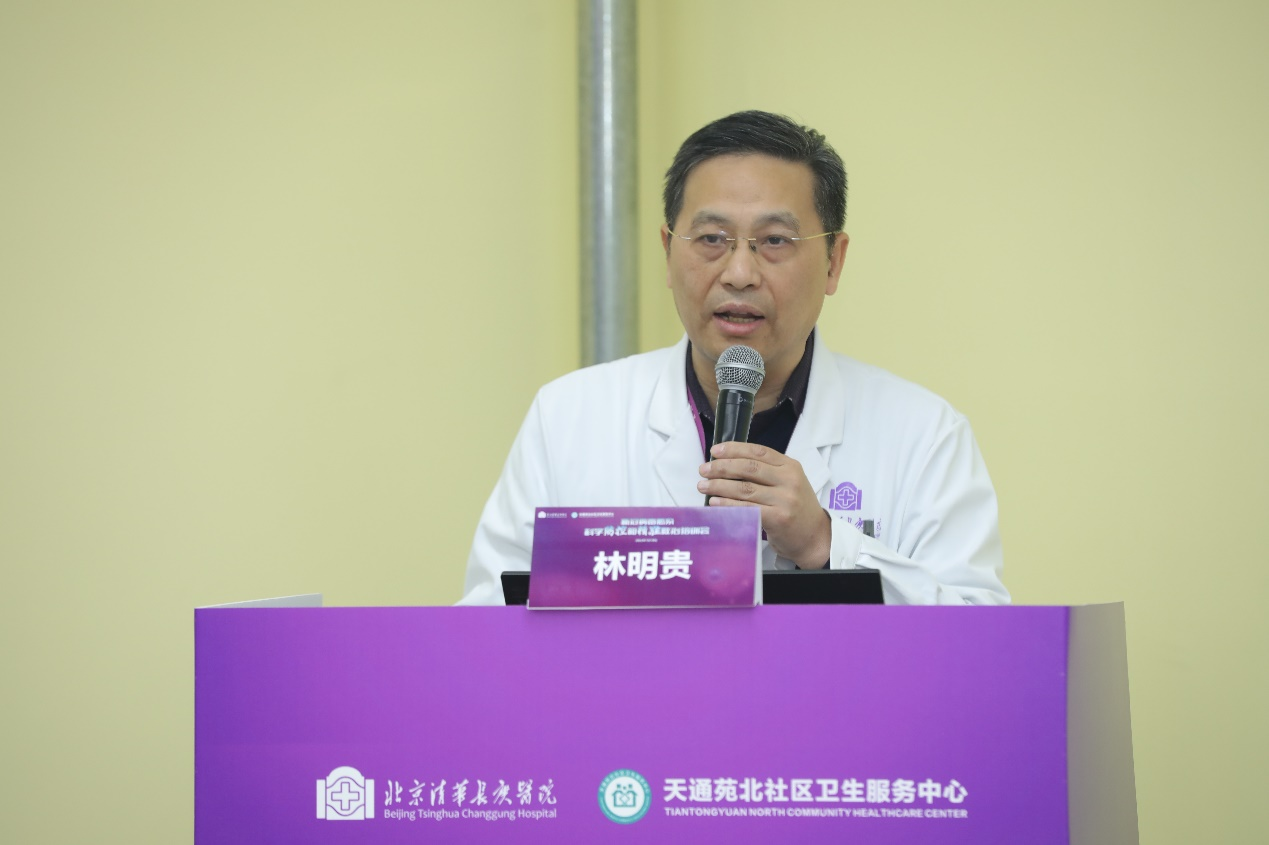 朱飞在致辞中借用“昨天、今天、明天”表达了疫情防控工作中的体会。回忆起疫情防控前期,清华长庚医院的一线医务工作者、志愿者的辛勤劳动与无畏付出,时至今日,仍然备受鼓舞。1月8日,国家疫情防控策略调整后,在董院士、魏来院长、王仲教授的带领下,北京清华长庚医院、天通苑北社区卫生服务中心快速组建起“8+1”团队,统筹全辖区工作力量,协同居委会,建立重点人群台账,为保障社区居民身体健康付出了巨大的努力。朱飞表示,在卫健委的领导和各位领导的推动下,天通苑北社区卫生服务中心稳步发展,未来将会为辖区居民的医疗卫生服务做出更大的贡献!