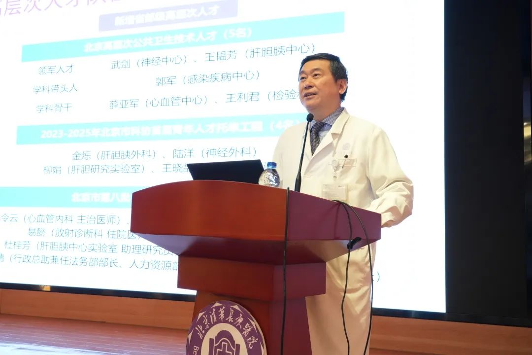 董家鸿做2022年度工作报告,从学科与人才队伍建设、医疗服务、教育教学、科学研究、医院治理、党的建设、医院工作反思等方面对全院工作进行了系统回顾。