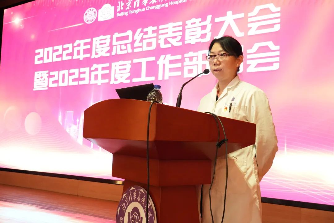 周月红向获得表彰的集体和个人表示祝贺,她表示2022年全体清华长庚人讲奉献、听指挥,在重大任务中展示出清华长庚人召即来、来即战、战即胜的责任担当。2023年是党和国家进入全面建设社会主义现代化国家、向第二个百年奋斗目标进军新征程的重要一年,是清华大学新医科建设的重要一年,也是医院转型、提升、上台阶全面进入内涵式高质量发展的关键之年。全院上下要统一思想共识,牢牢把握高质量发展的首要任务,加快推动教学研究型医院建设。全院要提高政治站位,全面加强学科建设,牢牢树立人才是第一资源的发展理念,完善教育教学体系,加强“三位一体”的教学理念,提高人才培养质量,加强文化建设,落实医院第二次党代会的各项工作部署,牢记使命,保持攻坚克难的韧劲,推动医院党的建设和各项事业发展迈上新的台阶。