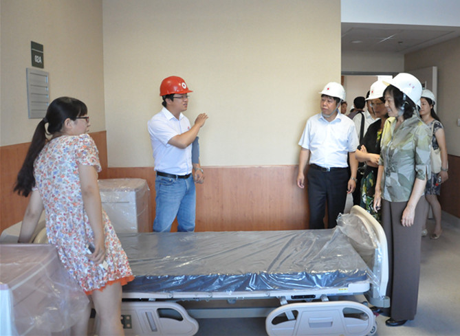 韩晓芳委员(右一)参观北京清华长庚医院病房 (徐中海 摄)