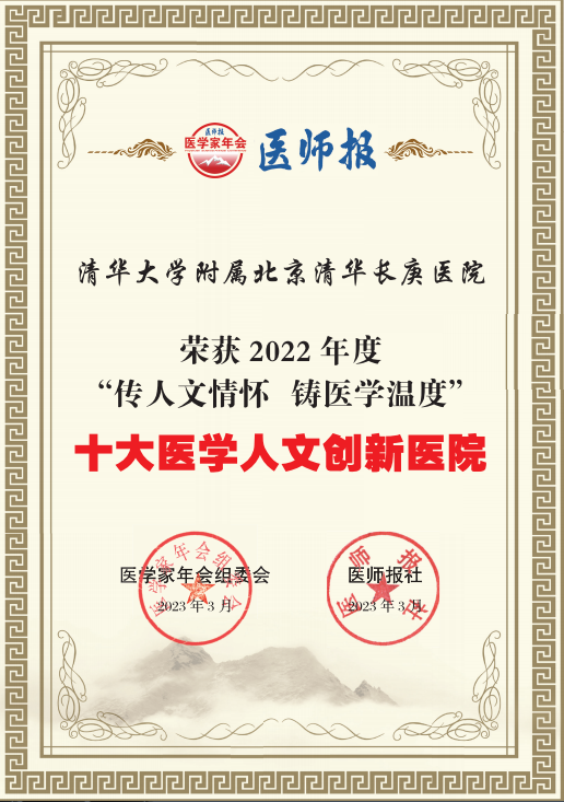 北京清华长庚医院3月28日电(通讯员 于悦超)3月24-25日,在“第八届医学家年会(2023)”上,清华大学附属北京清华长庚医院获得“十大医学人文创新医院”称号,医院党委副书记兼纪委书记王克霞获“十大医学人文院管专家”称号,外科部副部长、泌尿外科主任李建兴获“十大医学影响力专家”,胃肠外科主任李元新获“十大医学促进专家”称号,肝胆介入科主任张跃伟获“十大医学创新专家”称号,宣传中心专员韩冬野获“年度优秀通讯员”称号。院长董家鸿院士出席峰会并发表致辞。
