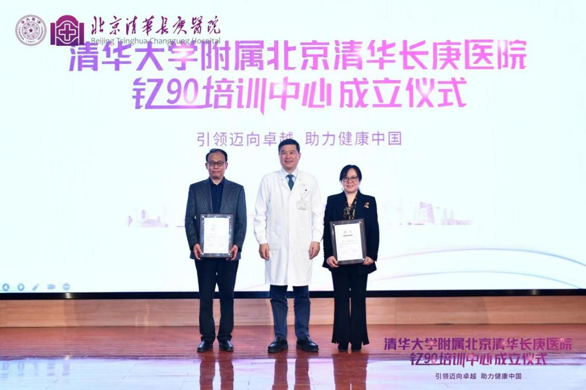 北京清华长庚医院3月30日电(通讯员 赵悦 郝华媛 项玉)2023年3月28日,北京清华长庚医院钇[90Y]卓越培训中心(以下简称“培训中心”)揭牌成立,将致力于钇[90Y]微球治疗肝癌技术的培训教学及学术交流等。北京清华长庚医院院长董家鸿院士,东南大学附属中大医院院长滕皋军院士,北京清华长庚医院党委书记周月红等参加揭牌仪式并致辞,仪式由北京清华长庚医院副院长魏来主持。全国各地百余名专家学者通过网络直播,共同见证中心的成立。