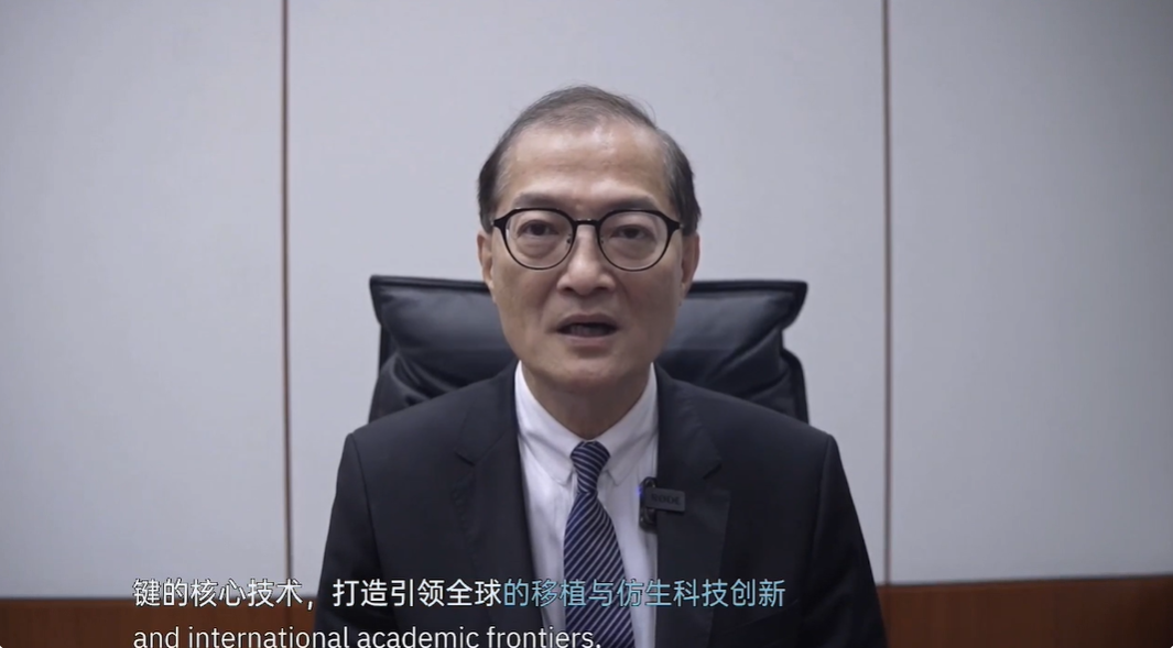 香港特别行政区政府医务卫生局局长卢宠茂以视频形式祝贺清华移植仿生院的成立,并寄语研究院发挥清华的临床医学和综合学科优势,凝集全球的力量,聚焦该领域的重大理论和关键技术难题,提供中国方案,从而促进全球器官移植与仿生医学的发展。