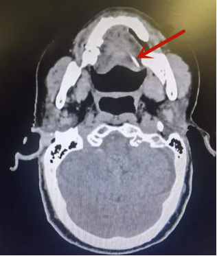 患者影像,箭头处为左侧舌根侧缘