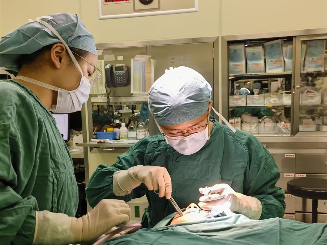 尹国平(右)在手术中