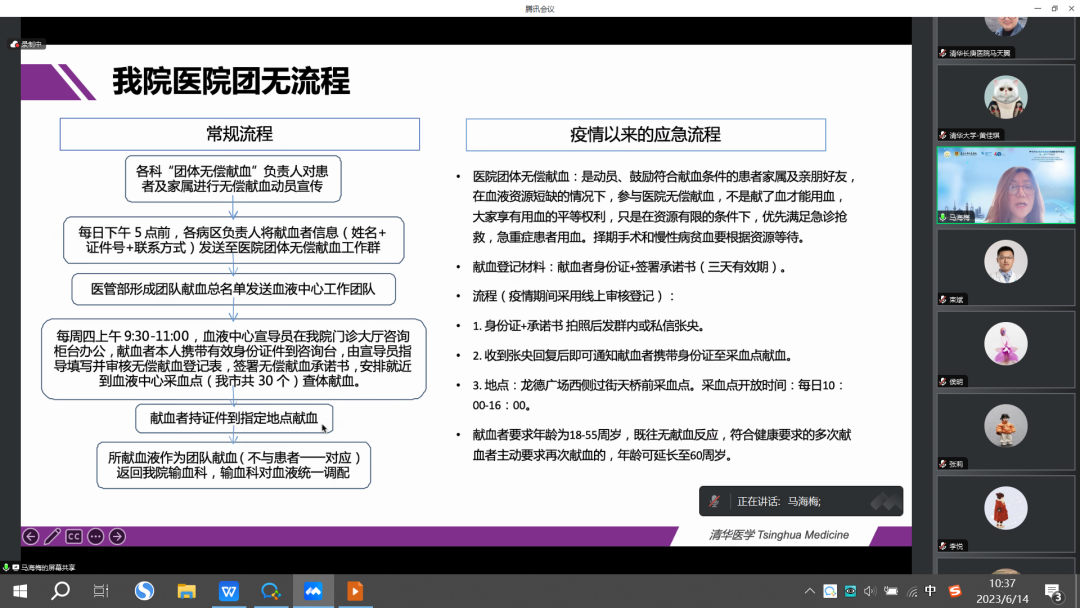 马海梅为与会人员详细讲解了《医院团体无偿献血流程》。熟悉掌握团体献血工作流程与各部门角色功能,有助于增强志愿者宣教效果,促进团体无偿献血宣传动员工作制度化、专业化发展。
