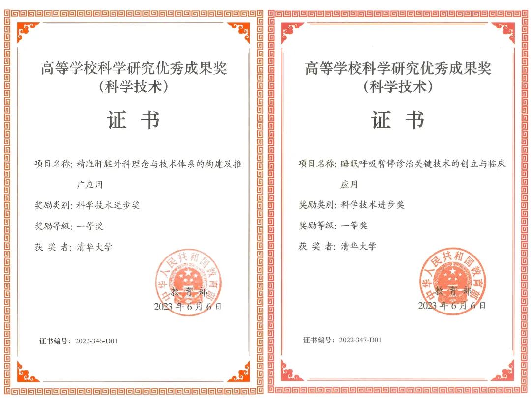 北京清华长庚医院6月28日电(通讯员 于悦超)近日,教育部公布2022年度科技进步奖获奖名单,由清华大学作为第一完成单位、北京清华长庚医院肝胆胰外科董家鸿教授团队的《精准肝胆外科理念与技术体系的构建及推广应用》与耳鼻咽喉头颈外科叶京英教授团队的《睡眠呼吸暂停诊治关键技术的创立与临床应用》获得一等奖。