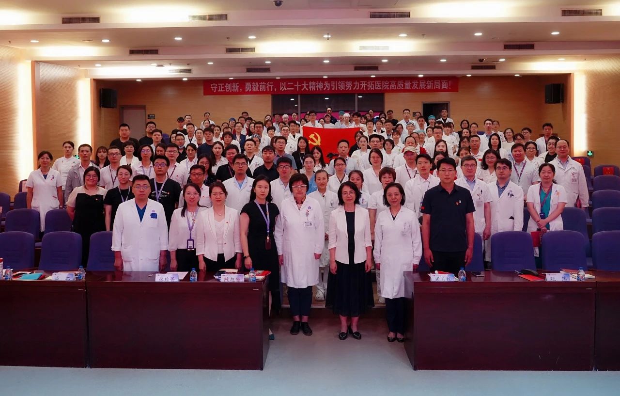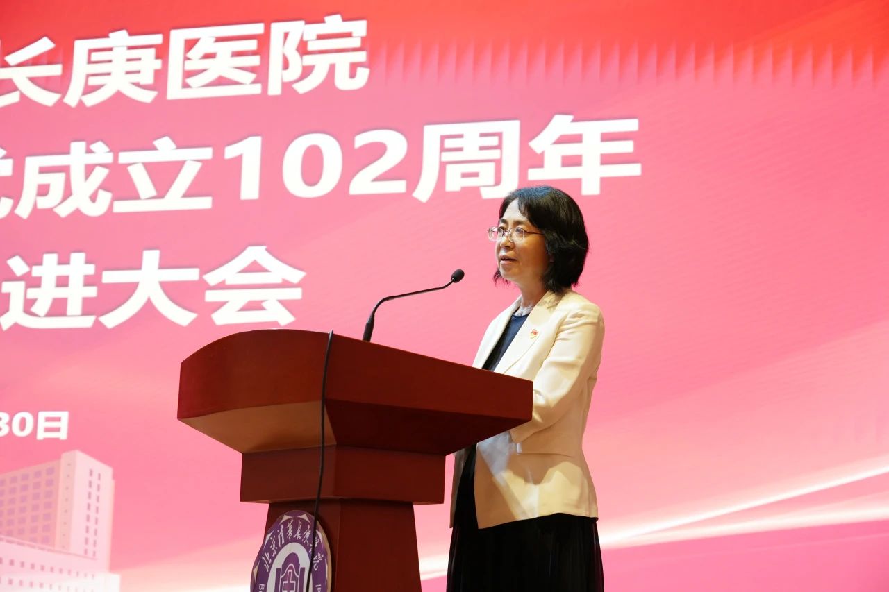 周月红代表医院党委向全院党员致以节日的问候,向受表彰的集体和个人表示热烈的祝贺,并向在医院建设发展中作出积极贡献的全体员工表示诚挚的感谢。过去一年来,院党委以党的二十大精神统领工作全局,统筹疫情防控和医院高质量发展,全力做好医疗救治、推进教学研究型医院的建设,医院各项事业取得新进展。“七一”前夕,院党委获得“北京高校先进基层党组织”表彰,激励着全院员工凝心聚力、接续奋斗。