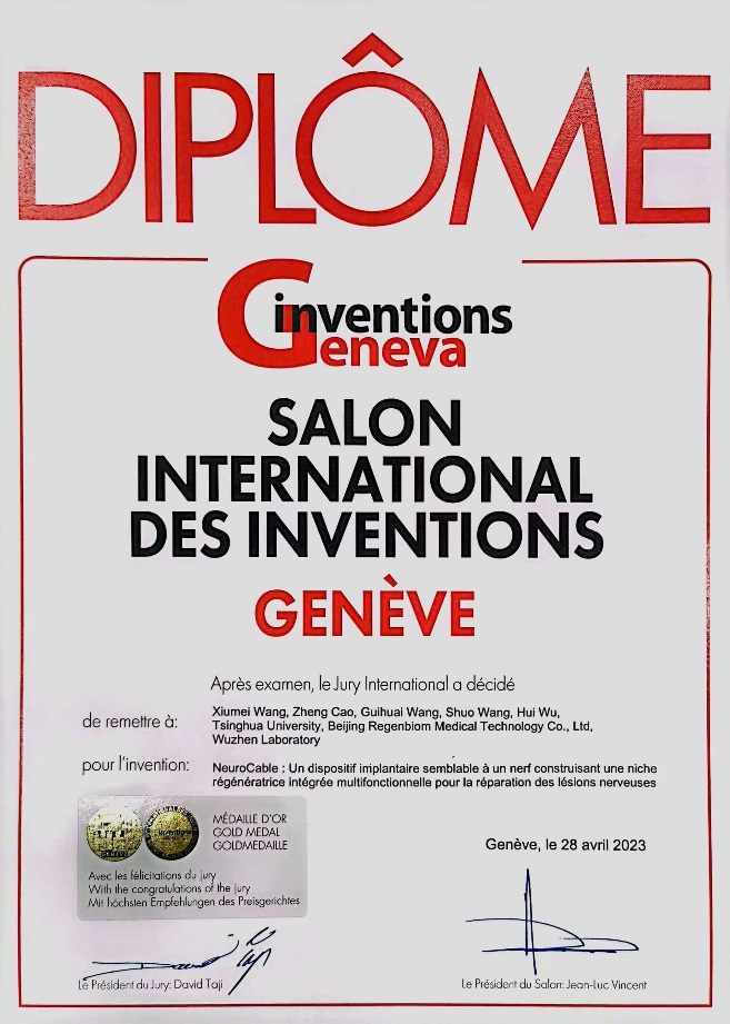 北京清华长庚医院7月11日电(通讯员 杨凯元)近日,第48届瑞士日内瓦国际发明展落下帷幕,项目“神索:基于多功能集成式再生微环境仿生构建的神经再生修复植入物”(以下简称“神索”)获“评审团特别嘉许金奖”,该项目由清华大学附属北京清华长庚医院神经中心主任王贵怀团队与清华大学材料学院、乌镇实验室生物材料及再生医学转化团队PI负责人王秀梅团队,材料学院伍晖团队共同完成。