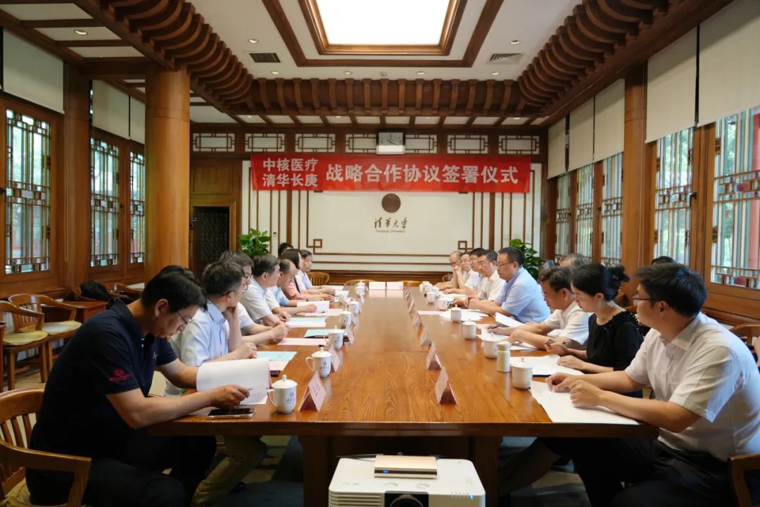 中核医疗作为中国核工业集团全资子公司,致力于发展核技术医学应用,及核医学、分子影像、放射治疗等领域的装备、药品研发,是我国核医疗产业的领军企业。清华长庚作为清华大学附属医院,依托学校雄厚的综合性学科优势,以满足社会健康需求和解决临床问题为引擎,业已建立临床驱动型-多学科融通式健康科技创新体系。为推动清华大学与中核集团向核医疗方向深化合作,清华长庚、中核医疗将联合申请建设“国家原子能机构核技术(核医疗器械)研发中心”,共建“清华长庚-中核核医疗项目应用示范基地”,共同发起成立“中国数字核医疗专科联盟”等,携手打造公立医院与医疗央企合作发展核医疗的国家队,推动解决重大医疗健康“卡脖子”问题,助力双方核医疗学科的发展,拓展核技术医学应用场景,为广大肿瘤患者提供高效的核医疗服务,提升我国核医疗临床诊疗水平。