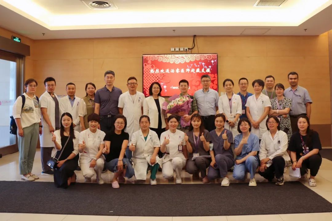 院党委书记周月红,副院长魏来,党委委员卢倩、高茹,肝移植科执行主任徐光勋,肝胆胰器官移植第一党支部书记宋继勇等在医院欢送,部分同仁前往机场送行。