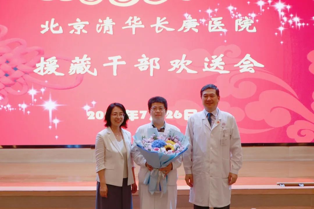 临行前的欢送会上,周月红书记和董家鸿院长代表医院深切嘱咐汤睿在藏工作要尊重当地文化,体现清华长庚人的精神风貌,搭建好两家医院间的桥梁,运用自身所学竭力为藏区人民服务。医院和科室将全力做好各方面的保障工作,做援藏医师坚实的后盾和“加油站”。