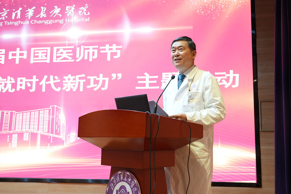 王宏伟通过视频向全体医师送上节日祝福。他指出清华长庚人始终坚持党的领导,在医疗、教学和研究等各方面均取得了欣喜成绩,在疫情防控中做出突出贡献,学校予以高度肯定。今年学校重新梳理了医学架构和职能,明确了以培养具有高度人文情怀的顶尖医师科学家和学术型医师为目标的清华医学新体系,希望大家把个人的崇高理想追求融入党和国家的卫生健康事业中,立足人才培养的根本任务,为清华新医学建设、健康中国建设、人类福祉贡献力量。