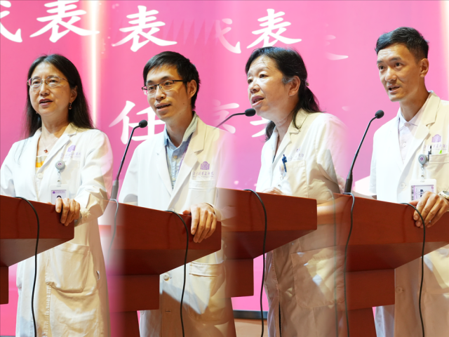 病理科主任尹洪芳、消化内科副主任任渝棠、专科部部长叶京英、妇产科副主任医师马珂,分别作为“水木杏林好医生”、“医德风尚奖”获奖医师、“科研创新奖”获奖医师、援藏援疆医师代表发言。尹洪芳说道,医生要有仁爱之心,这样才能初心不改,勇往直前。穿上白衣就有使命感,成为一名为患者排忧解难、被患者认可的好医生是一生的追求;任渝棠表示自己有幸在学医路途中遇到德才兼备的前辈,他强调医生要有人文精神,在工作中实践“生物-心理-社会”医学模式,更好地帮助患者;叶京英分享了科研动力与科研方法,指出人工智能是解决问题的重要渠道,要加强临床医学和基础医学的结合,积极运用清华大学的优秀平台与资源,共创医院的美好未来;马珂介绍了自己援疆以及同期援藏医师庄卓男的支援工作开展情况,他指出援疆、援藏过程中感受到了团队协作的强大力量,并深刻领悟作为一名医生的意义,能够通过个人努力帮助到患者,所有付出都是值得的。