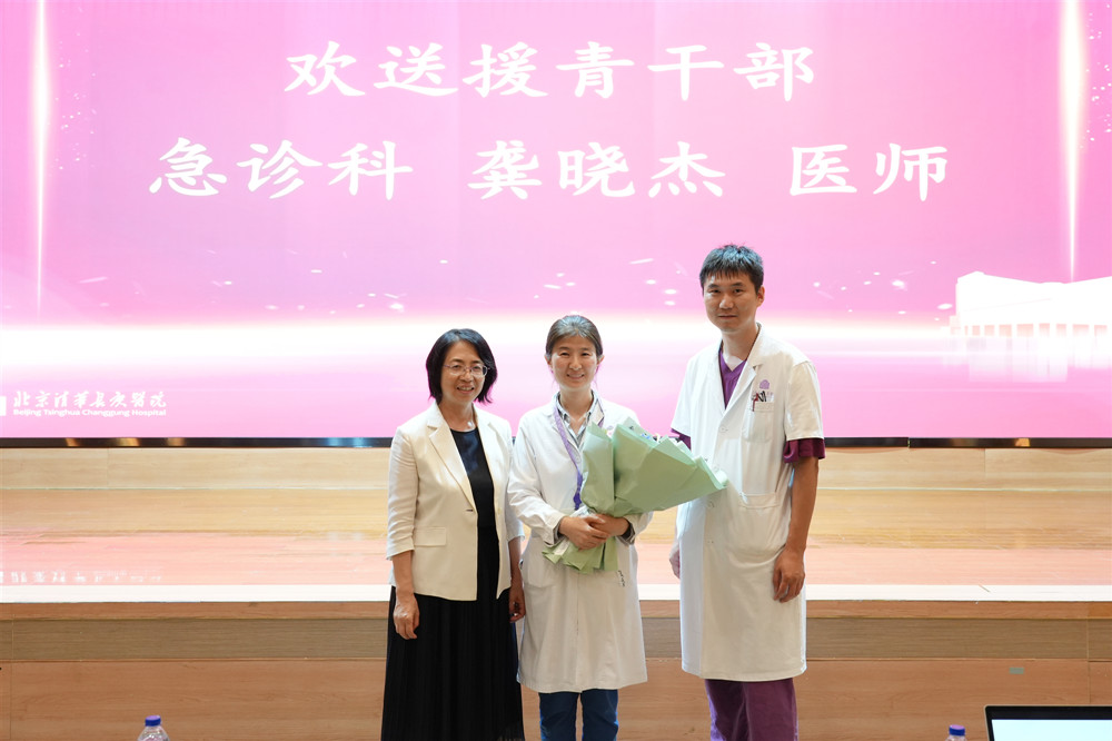 正值医师节之际,响应中组部援青号召,我院派出急诊科主治医师龚晓杰前往青海玉树,开展为期一年的医疗帮扶工作。龚晓杰表示,将积极配合当地医院工作,尽所能提供支持,把我院的先进理念、技术与艰苦努力、争创一流的精神带到玉树去。此外,我院院领导也对正在援疆的麻醉科主治医师王琳琳与正在援藏的肝胆胰外科副主任医师汤睿进行了远程慰问,并通过工会为他们送上了医师节祝福。