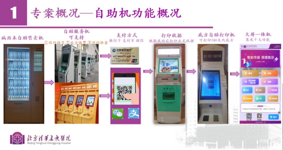除人工窗口外,2022年上线新款自助机,设有建档、挂号、缴费、预约检查、综合打印、综合查询等功能,支持退卡结算、数字人民币等支付方式,设备增加至145台,使用率提升至81.26%,为患者提供诊前、诊后服务一站式优质自助服务。