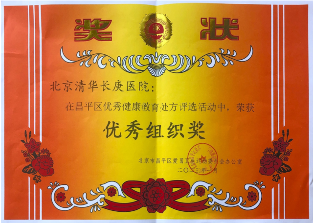 我院推送的5份健康教育处方,荣获北京市优秀健康教育处方一等奖4项、三等奖1项。同时医院获得“昌平区优秀健康教育处方评选优秀组织奖”。