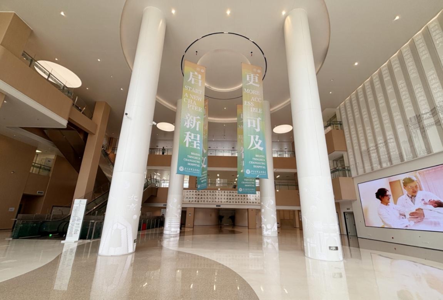 走进医院二期一层大厅,充满生机的青绿色主色调映入眼帘,自然节气与健康交融的诗文点缀,书法绘画艺术等中国优秀传统文化作品的精心装饰,《礼记·礼运大同篇》书法长卷,孙思邈《大医精诚》艺术墙画,中国艺术研究院师生“生命之歌”公益画展,清华爱心奶奶团手工钩织的紫荆花,儿科候诊区卡通大树与可爱动物贴画……医院空间文化设计充分体现以人为本,融合中国二十四节气的自然哲学与健康理念,通过AI辅助设计与医患共创,结合生命之脉、文化之脉、自然之脉三大主题,营造集专业医疗、人文关怀与艺术疗愈为一体的文化环境,医院在建筑中的空间留白,还将陆续更新布置艺术展览,打造读书角、咖啡吧等文化公益空间,让患者和员工在轻松的环境里就医、工作。