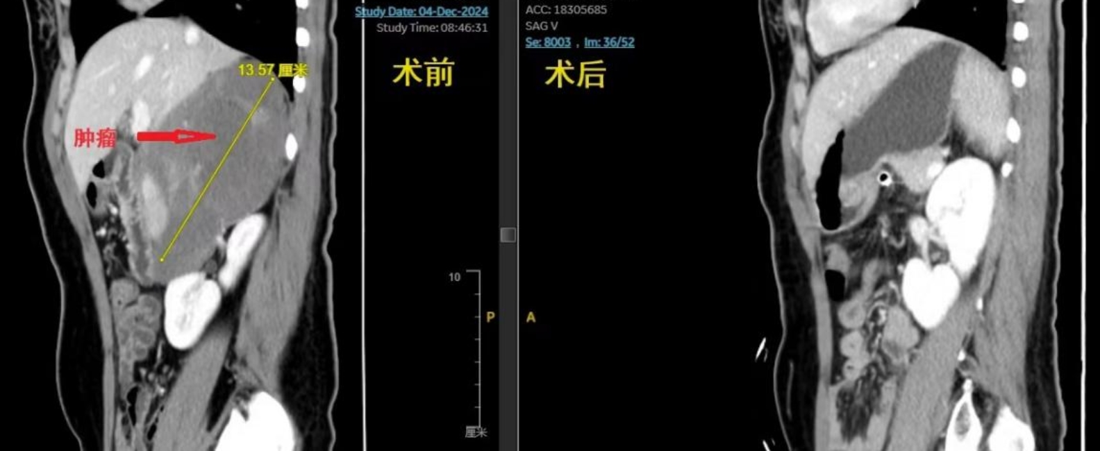 北京清华长庚医院1月13日电(通讯员 李兵 刘刚 魏甜 实习生 顾晓赟)近日,北京清华长庚医院肿瘤外科李雁主任团队,联合肝移植科宋继勇医师团队,历时14余小时,为患者切除了直径达13.5cm、已包绕了腹腔7根主血管的肿瘤,患者术后恢复良好,已顺利出院。