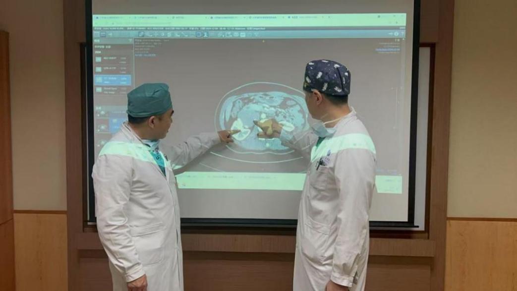 李雁(左)与宋继勇两位主刀一同研拟手术方案
