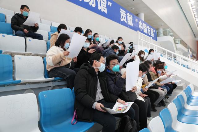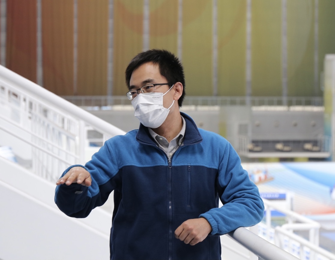 在场馆内部会议上,冬奥医疗官、骨科副主任医师宋飞对即将到来的测试活动的封闭管理事务进行调度。陈旭岩听取了在场队员的发言,嘱咐大家尽快熟悉场馆,加强实操演练,并对后勤保障工作进行了统筹安排。