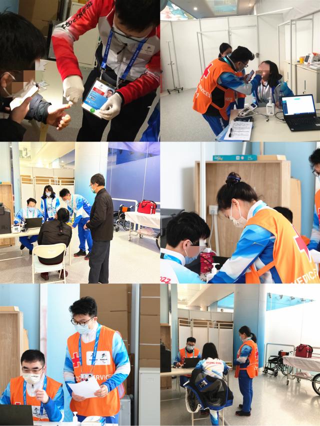 夜宿冰立方的日子是踏实而美好的。记忆犹新的一次,是我们结束一天的工作准备洗漱休息时,接到医疗官宋飞通知,有工作人员划伤了手需要消毒处理,我们立刻换上衣服、打开医疗站进行准备。由于时间太晚,场馆内的灯基本都关了,我们就用手机灯光照着,严格谨慎操作,快速帮工作人员紧急处理了伤口,没有一丝慌乱,保证了场馆工作人员的安全与健康。这光,虽不如灯火般通明,但它就像我们的奥运主火炬一样,微小,却生生不息,为所有奥运人注入了坚韧的力量。