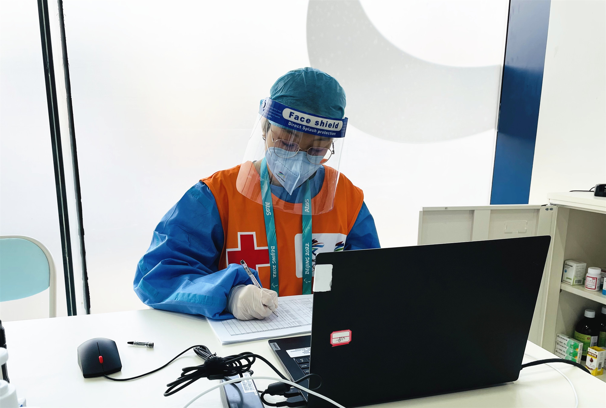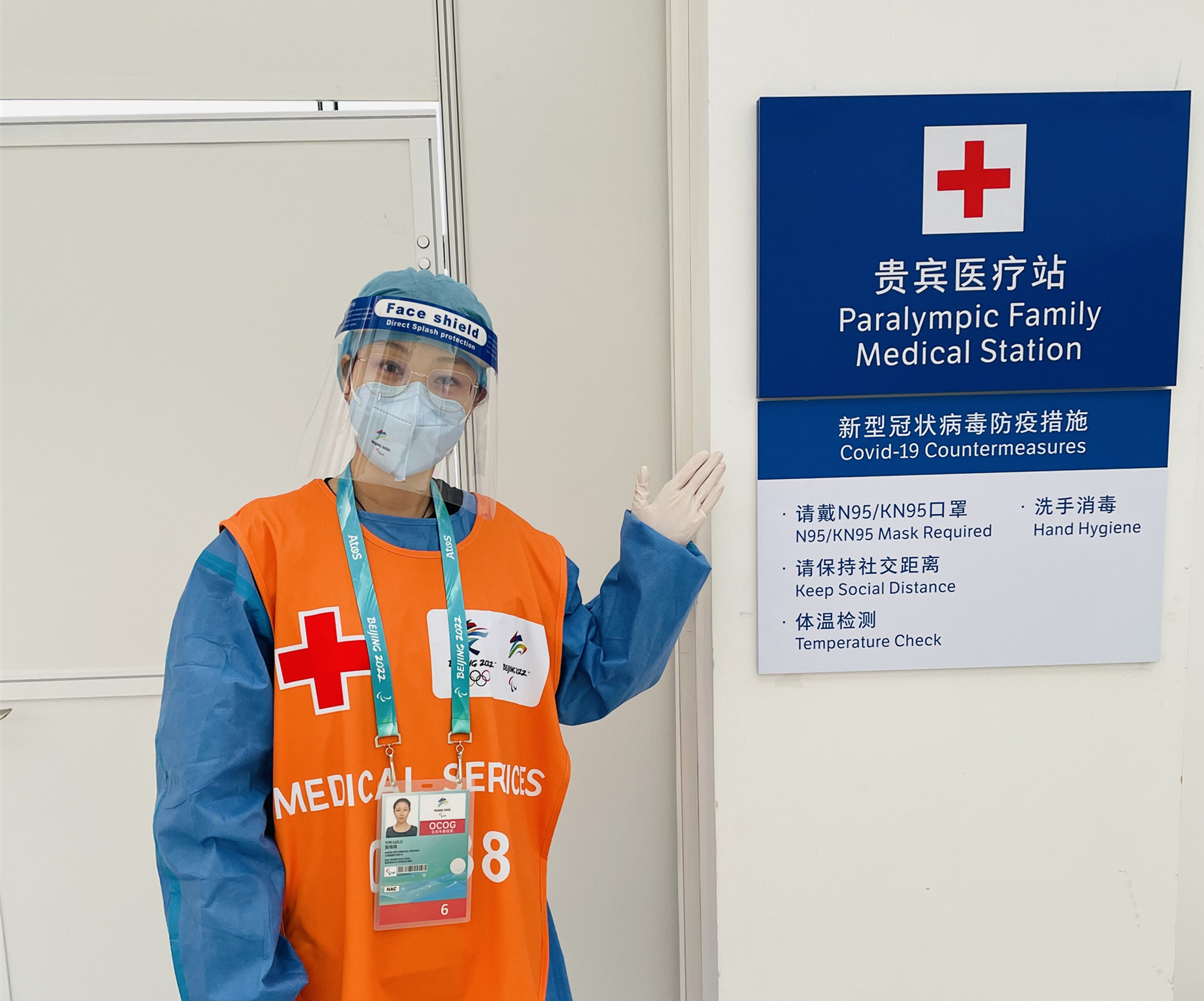 为了准备北京2022冬(残)奥会,我与奥运大家庭(贵宾)医疗站的队友们,与医疗保障大团队,从2020年12月开始着手准备,经历了2021年4月份的测试活动、2021年10月份的轮椅冰壶锦标赛,一直到2022年2月开始的冬奥会正式比赛,我们没有一刻松懈,始终以积极饱满的状态参与每次培训,职守每一班岗。