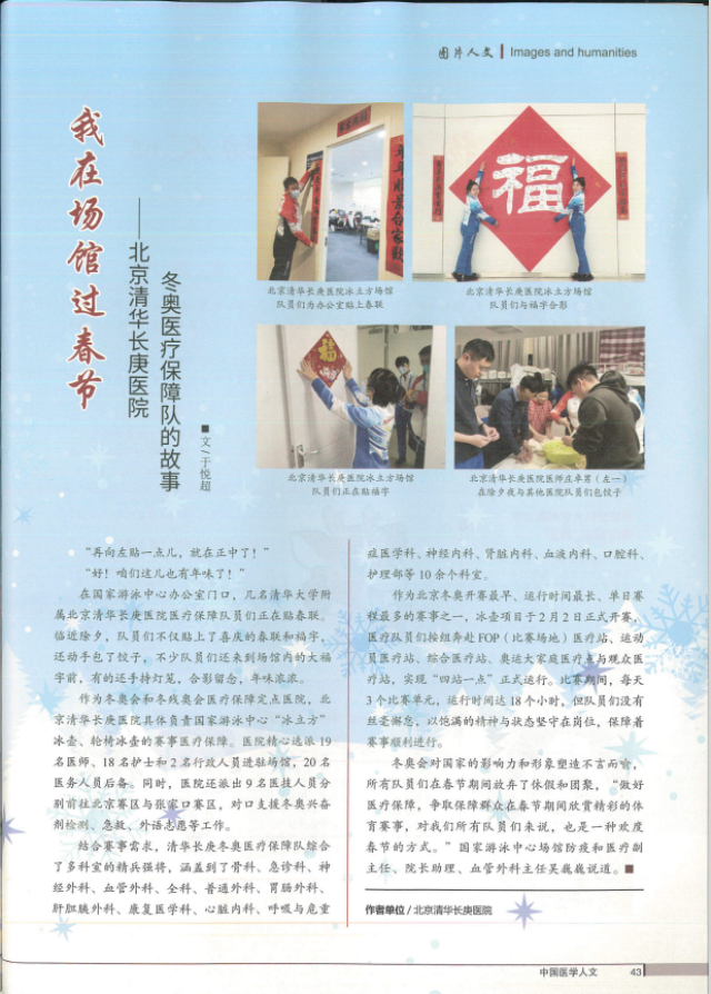 作为冬奥会和冬残奥会医疗保障定点医院,北京清华长庚医院具体负责国家游泳中心“冰立方”冰壶、轮椅冰壶的赛事医疗保障。医院精心选派19名医师、18名护士和2名行政人员进驻场馆,20名医务人员后备。同时,医院还派出员工分别前往北京赛区与张家口赛区,对口支援冬奥兴奋剂检测、急救、外语志愿等工作。