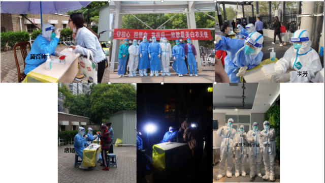 4月25日晚,除外保障现场工作的人力,在药学部的统筹安排下,赴多社区支援核酸检测,“一点多才睡下,六点集合”是几乎所有支援人员的情况,有的药师刚下晚班回到家就再次返回支援采样至深夜。截至6月14日,药学部已有120余人次参与今年4月下旬以来的社区全员核酸采样工作。
