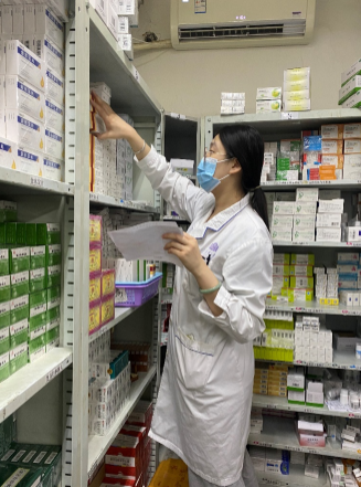 图4 支援清华大学校医院——孙昱博药师工作情景