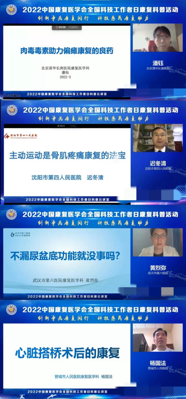 清华大学附属北京清华长庚医院康复口腔党支部书记、康复医学科主任潘钰教授,积极组织来自北京、上海、天津、台湾、河北、山西、辽宁、武汉、湖南、河南、山东、甘肃、黑龙江、陕西、吉林、内蒙古等16个省市的20余位专家组建神经康复科普论坛、疼痛康复科普论坛、妇儿康复科普论坛、老年病康复科普论坛4个康复科普分会场。