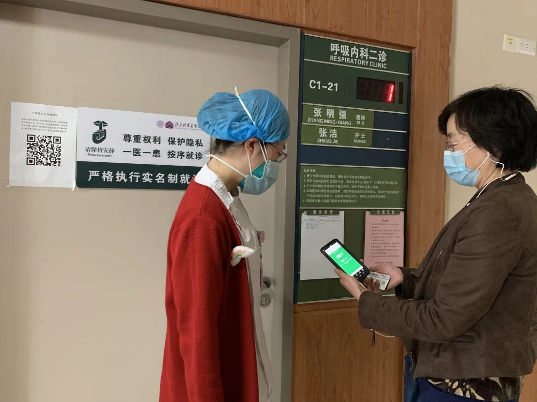 为保障零疏漏,全方位多角度进行排查,我们设立了三道防线,第一道防线——楼外预检分诊,询问流行病学史,测量体温,协助患者扫码,手工进行登记,零下十几度的冬日我们也要让患者感到暖心,感到放心,一线排查23万人;第二道防线——诊区预检分诊,保证入口唯一性,我们将各看诊区域进行隔离,详细登记及筛查,排查率100%,二线排查10万人;候诊区域我们拉上了爱的防线,减少人员聚集,护理人员随时巡查,保证1米以上间距。第三道防线——诊间确认无误,保证无遗漏,所有诊间门上贴上二维码,进入诊间前护士要确认,进入诊间后医生再确认,就是排除一切可能性。